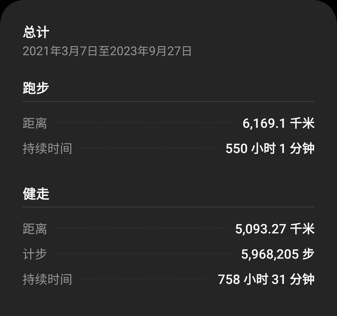 21年9月开始到现在满2年,共跑了11250公里。167斤减到120斤,目前维持在122~126斤。