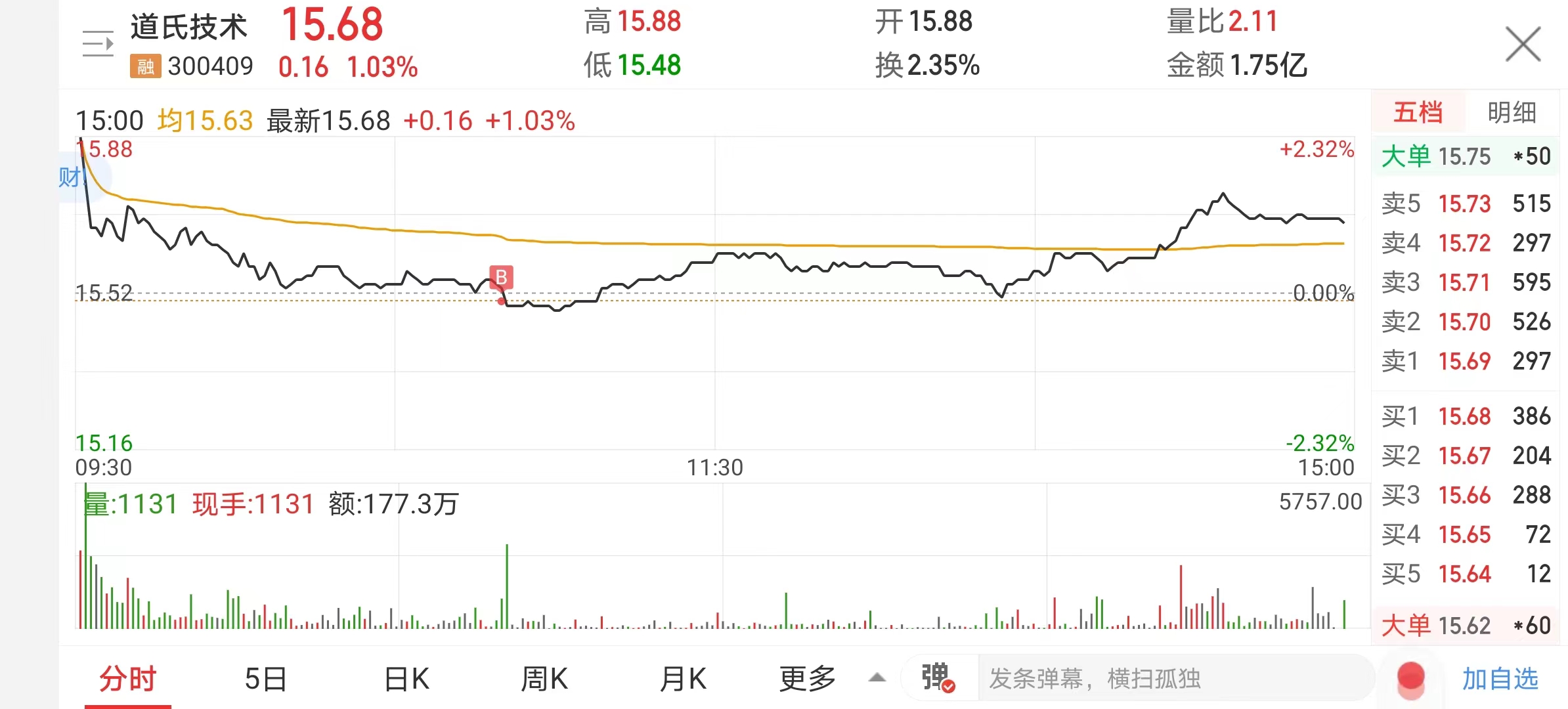 上午15.5挂单买了2000股道氏股份,用于可转债配售,几乎买到了最低点。