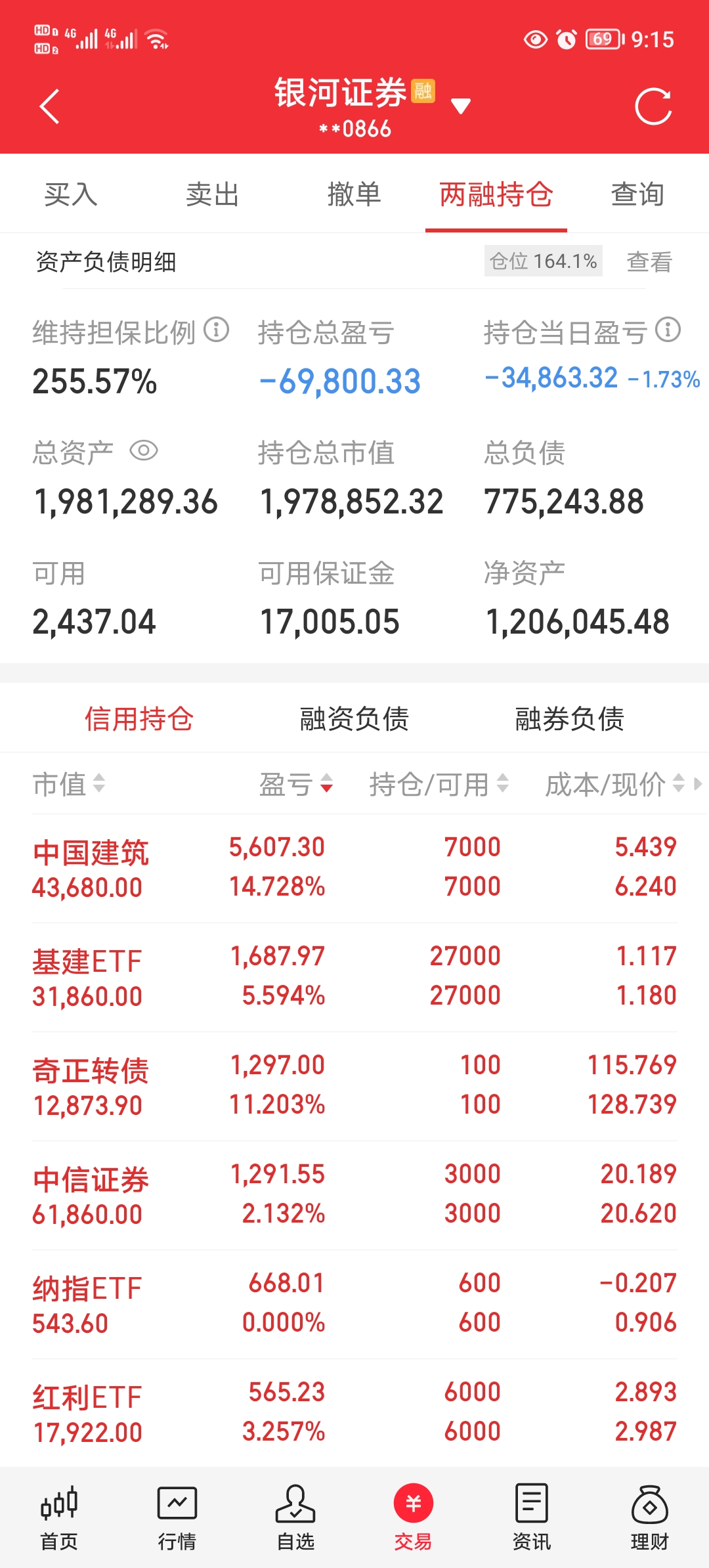 仓位160.5%,余1.3万现金,9.7万融资额度。