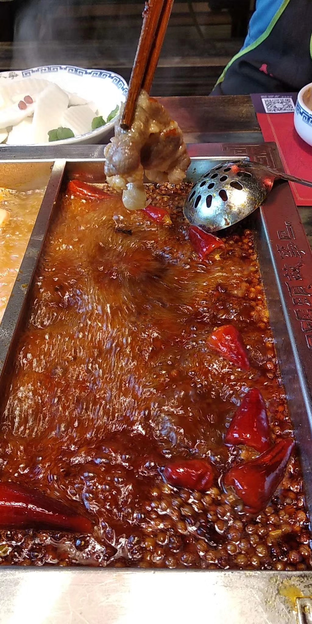 最后临走来顿火锅真美滋滋。。川渝的火锅就是好吃,锅底舍得给材料,厚厚牛油锅里滚滚,满满的一锅各种材料的底料,真是好。 其他地方油滚开了就看见下面的水。。。只有这边的火锅是油滚油的香,。来趟四川来顿火锅值回机票。