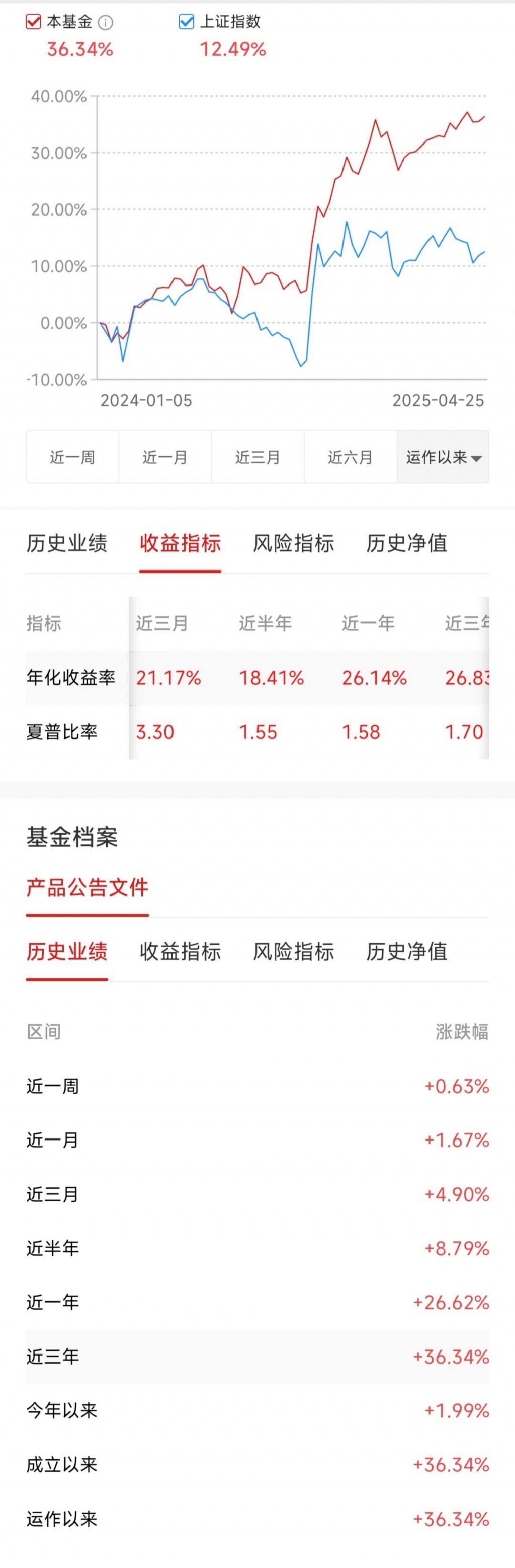 按月是低回撤,2022年2-4月底连续回撤大约6%,之后按月连续盈利,一年之中经常是连续数月,十几个月的稳步上升,少数几个月的回撤幅度也比较小。
