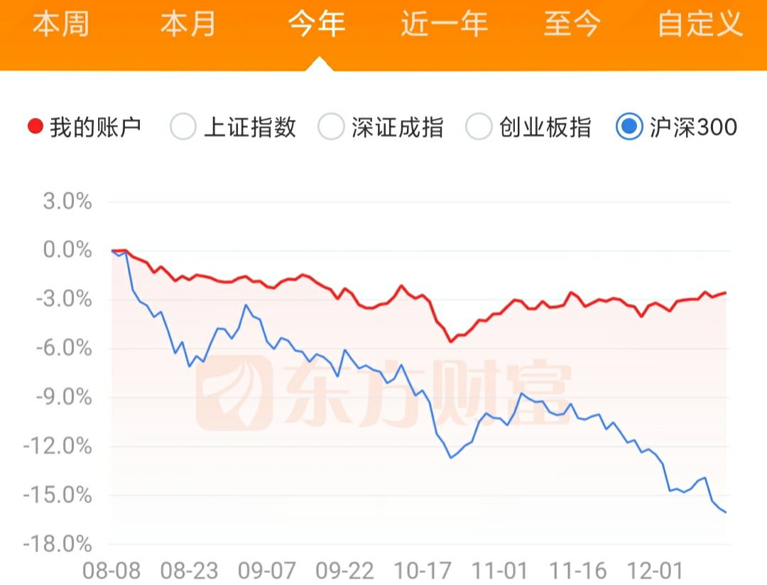 8月8日满仓运行至今 产品6个月整 收益 -3.3%