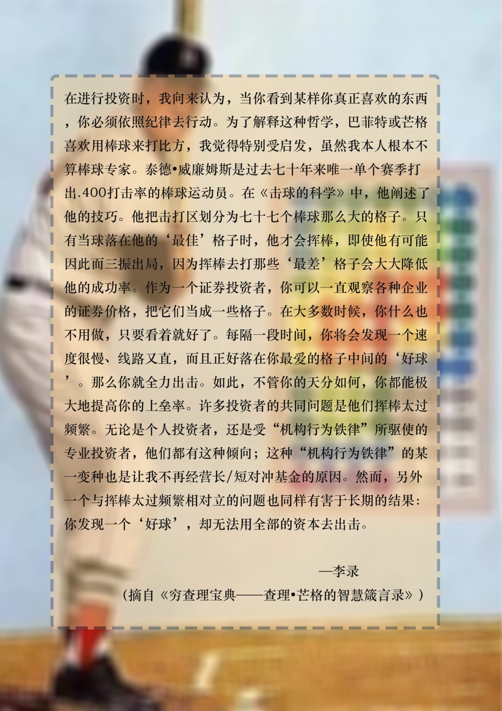 第二,感谢本杰明格雷厄姆、查理芒格、沃伦巴菲特、李录等价值投资的前辈,他们总结出来的经验甚过稀世珍宝,也能让我站在大师们的肩膀上探寻价值投资的秘密。
