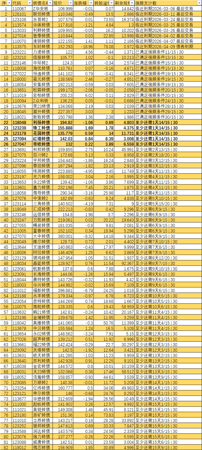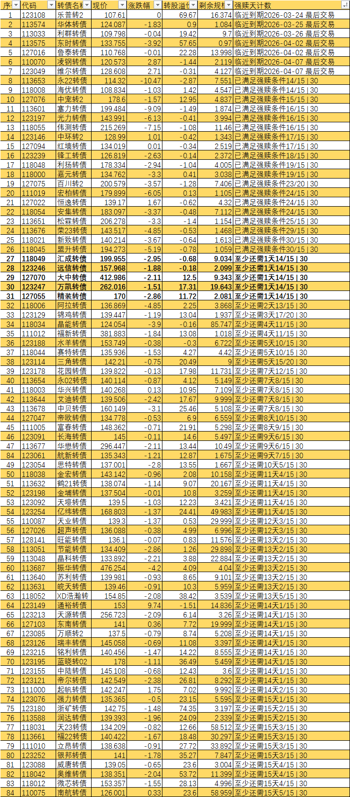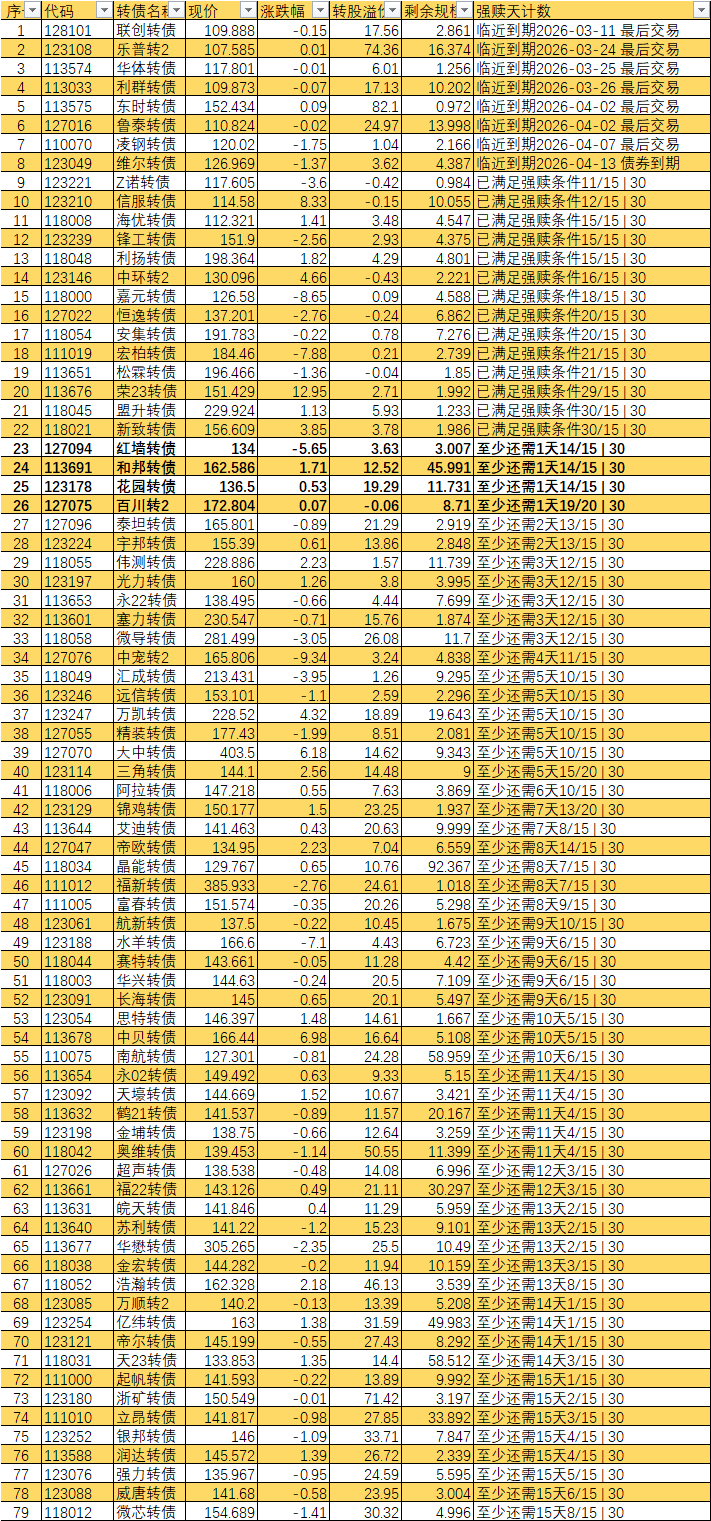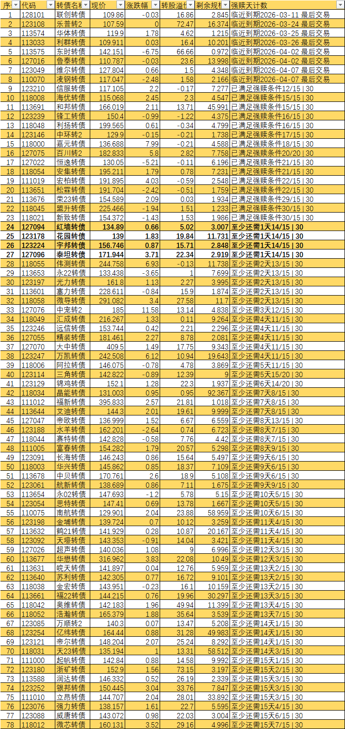 已经宣布强赎的不从表里划掉吗 比如旗滨