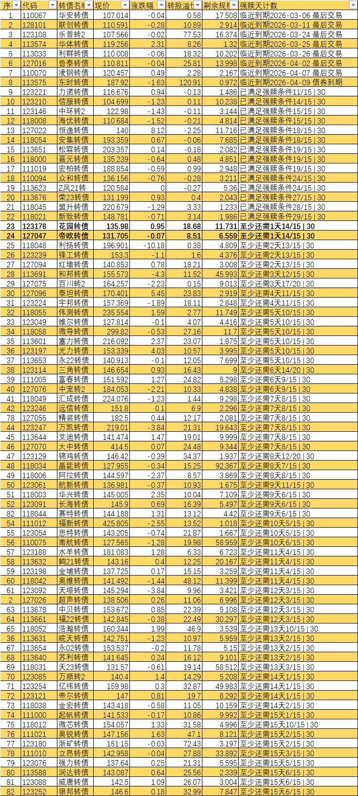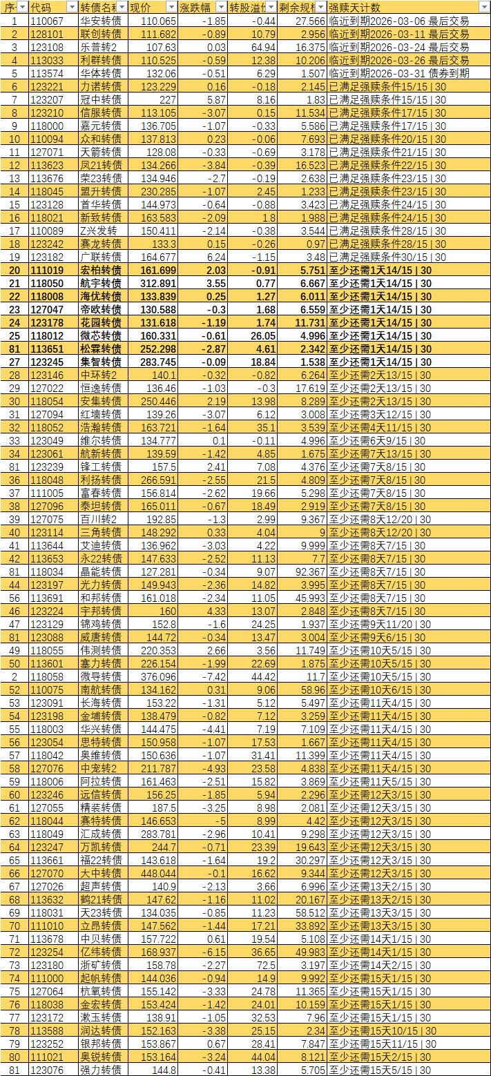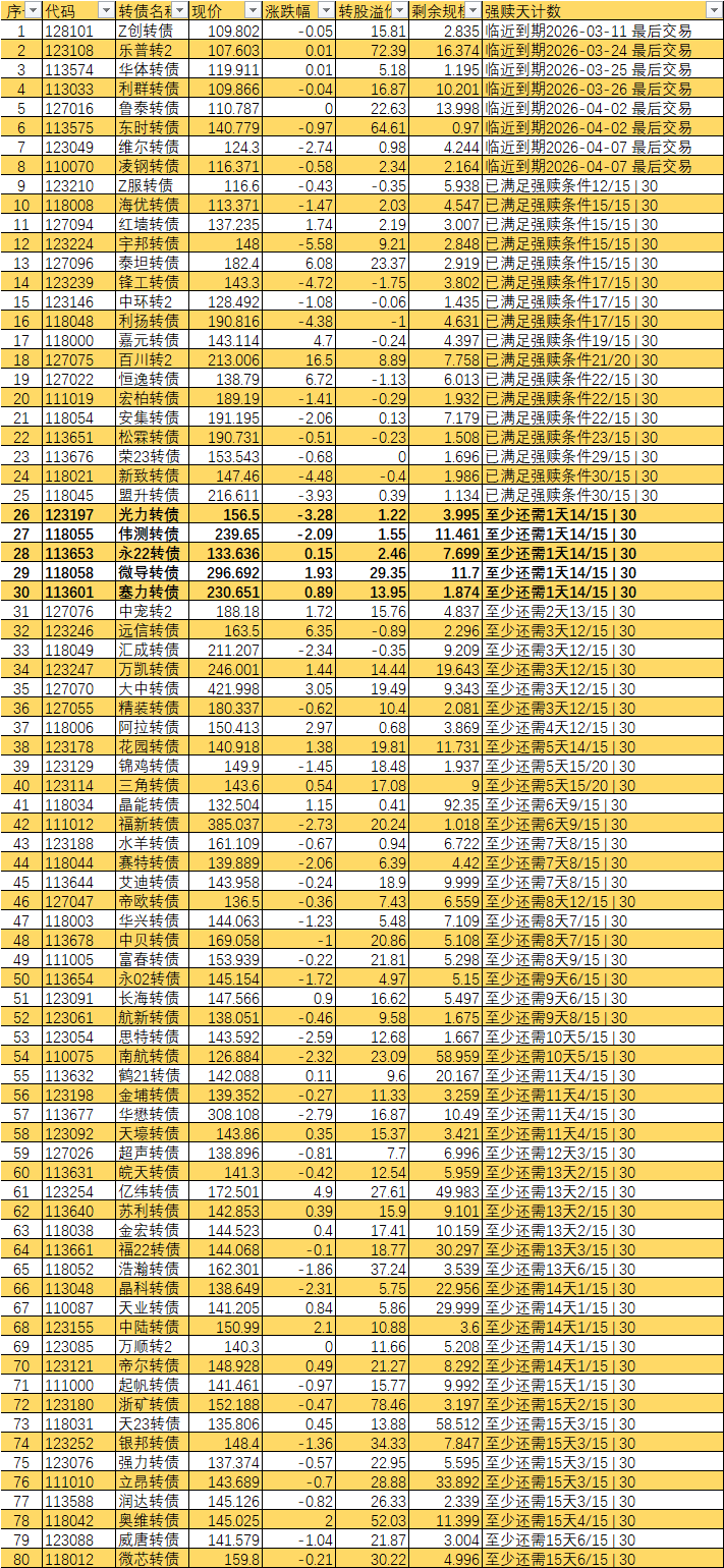 已经宣布强赎的不从表里划掉吗 比如旗滨