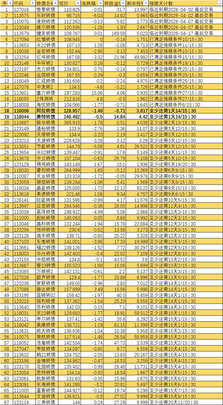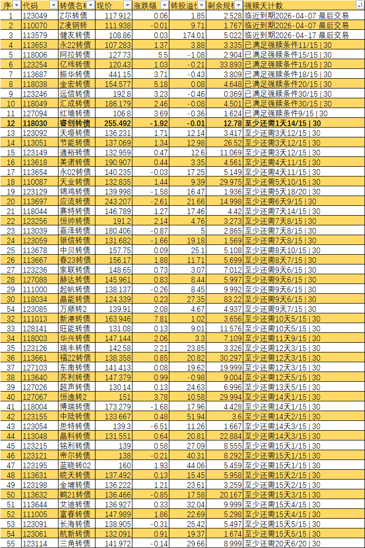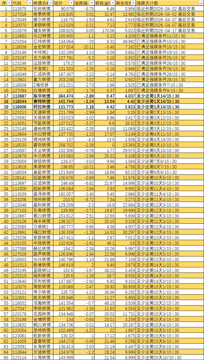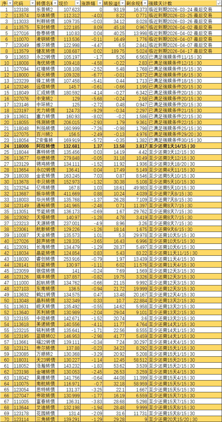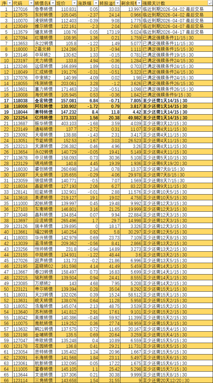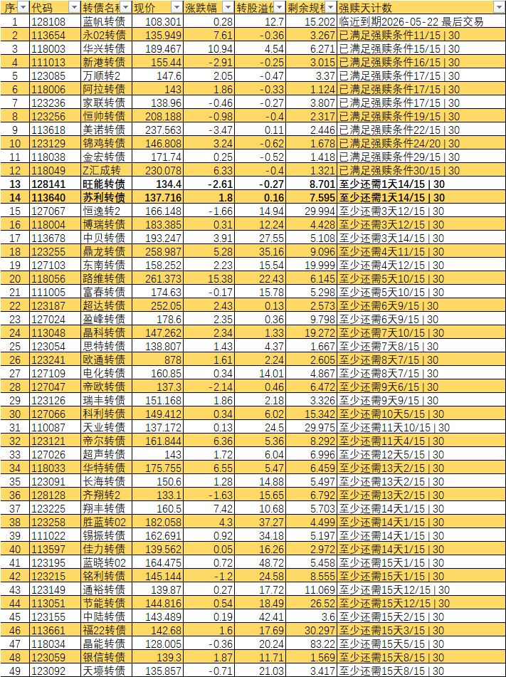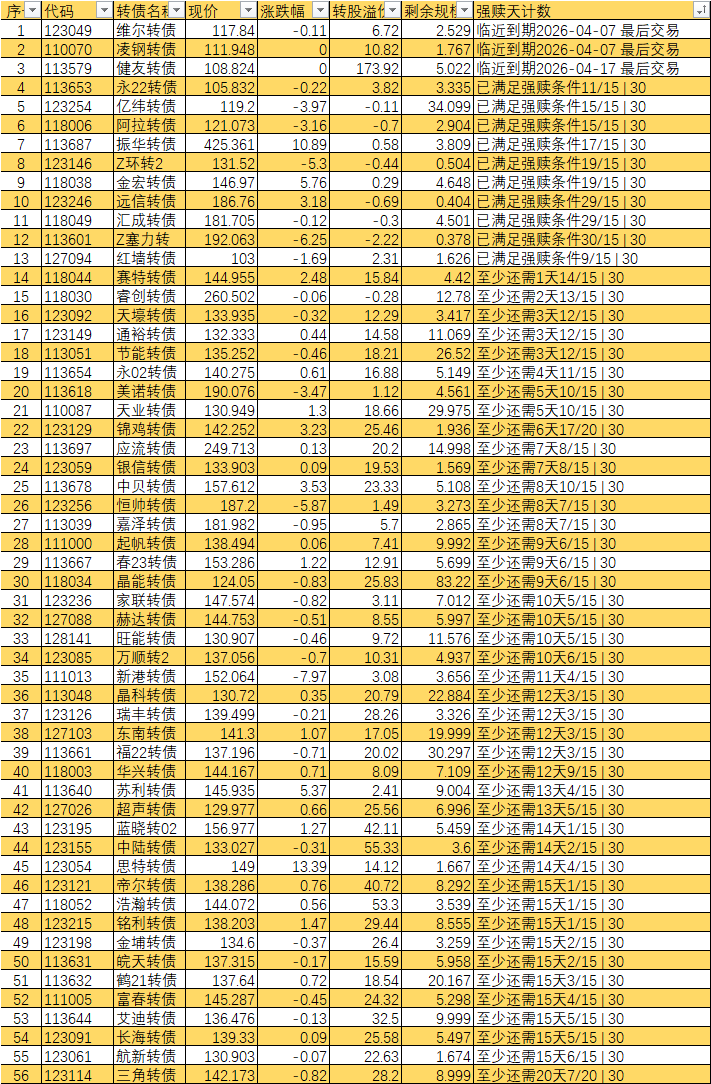 根据现有数据,截至3月10日有10个交易日达标,加上3月11日至16日的4个交易日,目前总共只有14个交易日满足强赎条件,尚未达到触发强赎所需的15天。