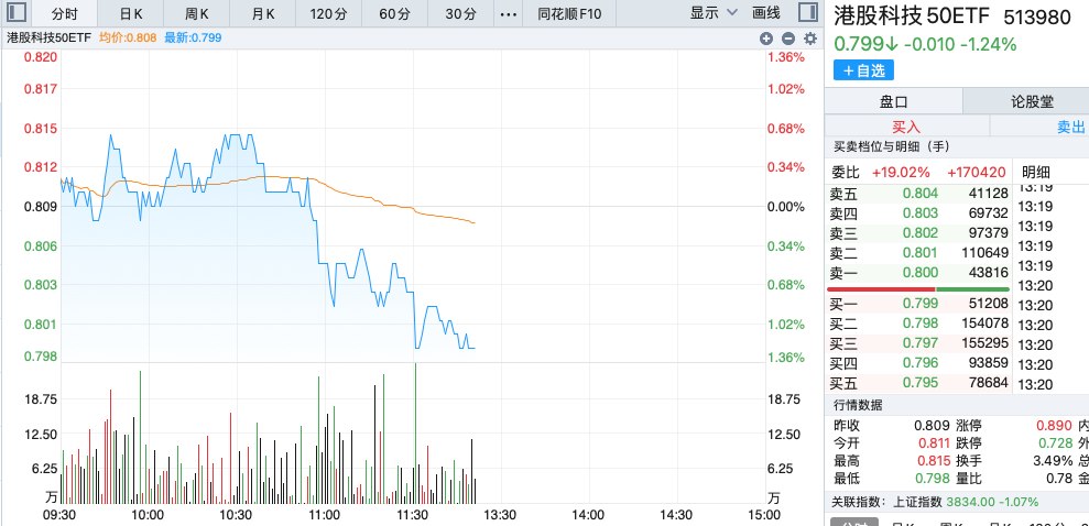 513980跟踪的931573,中午ETF跌1.24,指数跌1.72 (有意思的是同花顺有11点半到12点数据)