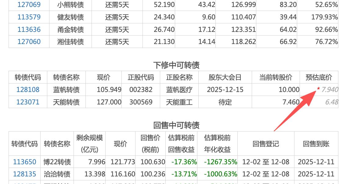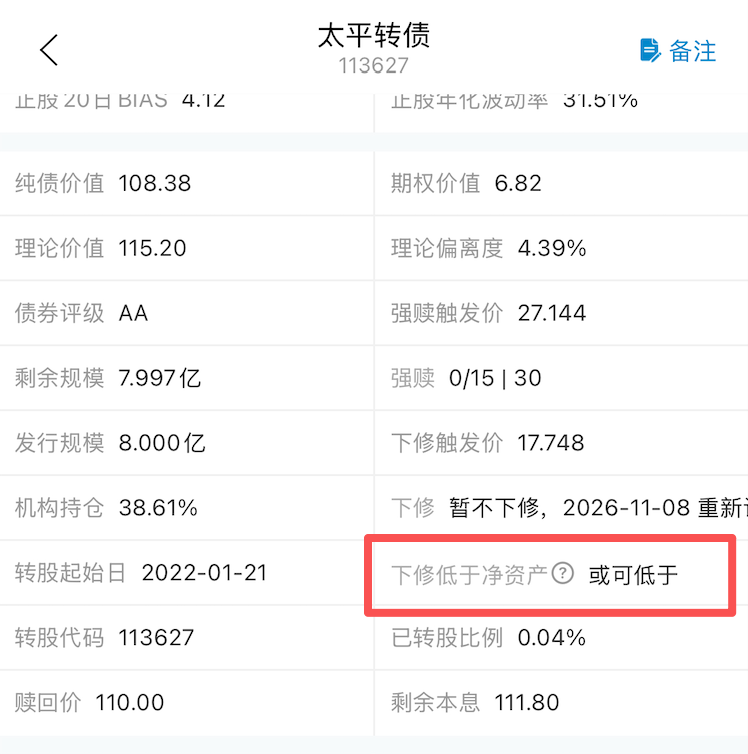 投资提示的下修部分,对应本次下修可能触及到无法突破每股净资产的做了标识,可以每日参考