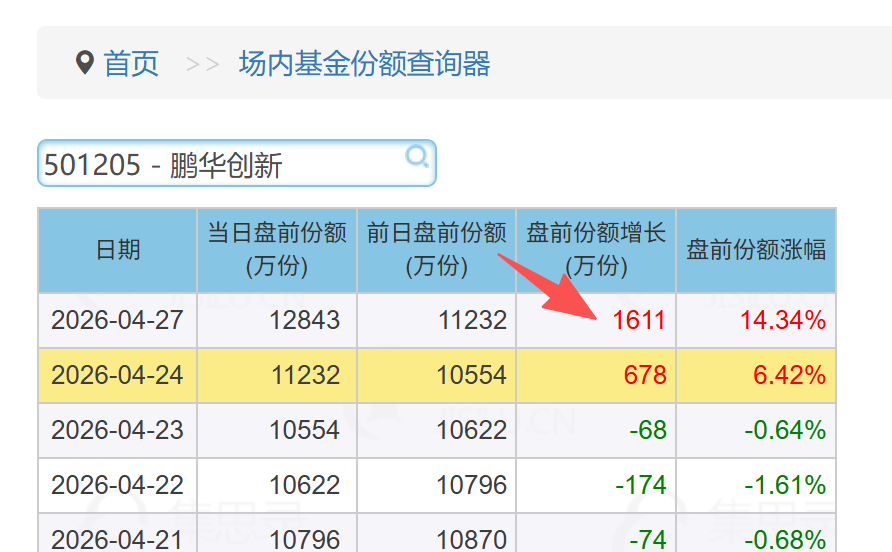 你好,请问 https://www.jisilu.cn/data/fund/amount/ 场内基金份额查询器 ,查出来的“ 当日(T日)盘前份额增长(万份)” 这个数据,