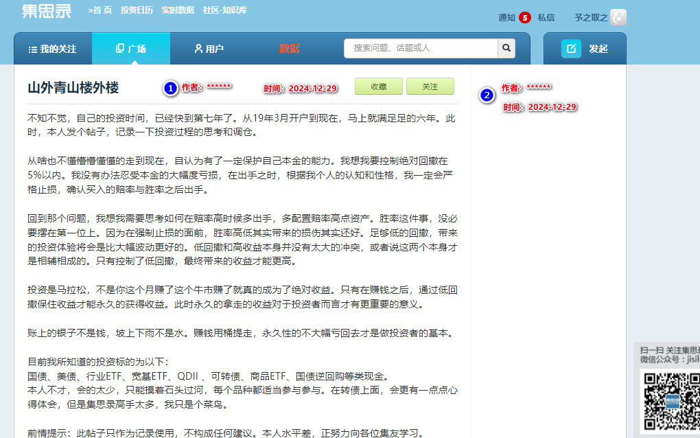 你好,集思录的管理员。我是刚刚来的新人,我发现在浏览帖子的回复的时候,按照点赞数看回复,用户引用的回复如果太长的话,就会显示不完全,很难受,想要完整看就要按照时间排序一个一个找,有点麻烦。希望能把引用的回复显示完全。