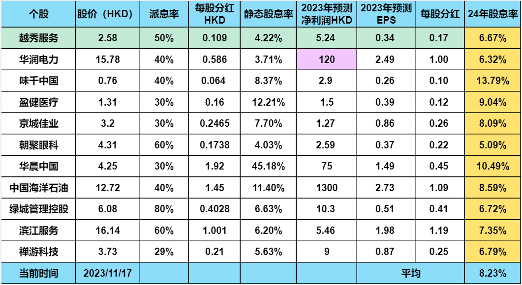 平均股息率已经达到8.23%了,且大部分具有可持续性,京城佳业、滨江服务、绿城管理控股、禅游科技、朝聚眼科等未来几年都有15%以上的成长性。