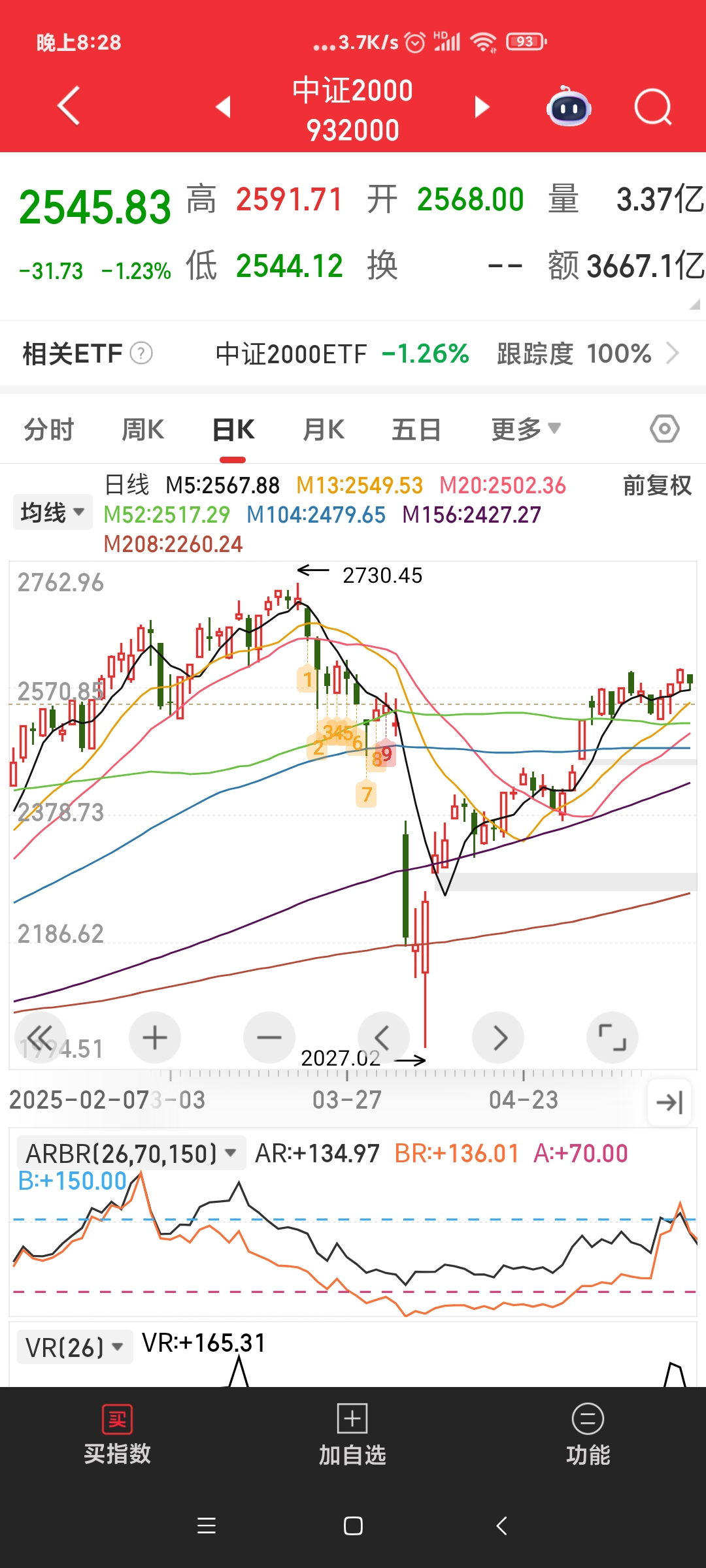 结论,加仓可以慢慢来,短期有下跌空间,从人气指数创业板指来看,日线连续三天阴线,没有反弹,所以只要每天创新低,就不会见底,中证2000本轮反弹超过了年初开盘点数2%左右,但长期我觉得小盘股没啥价值,除了讲故事以外。