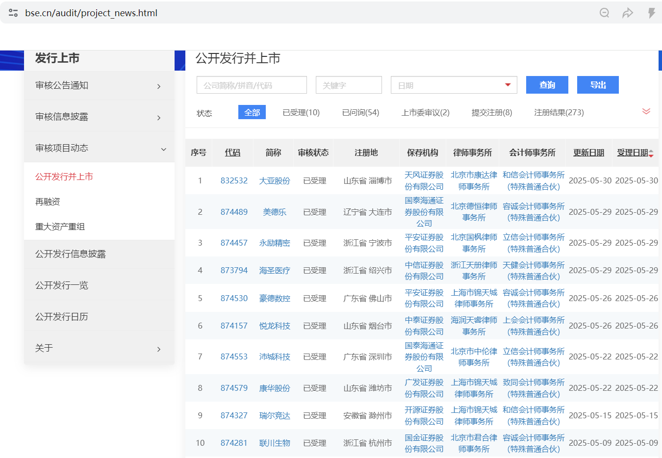 https://www.bse.cn/audit/project_news.html