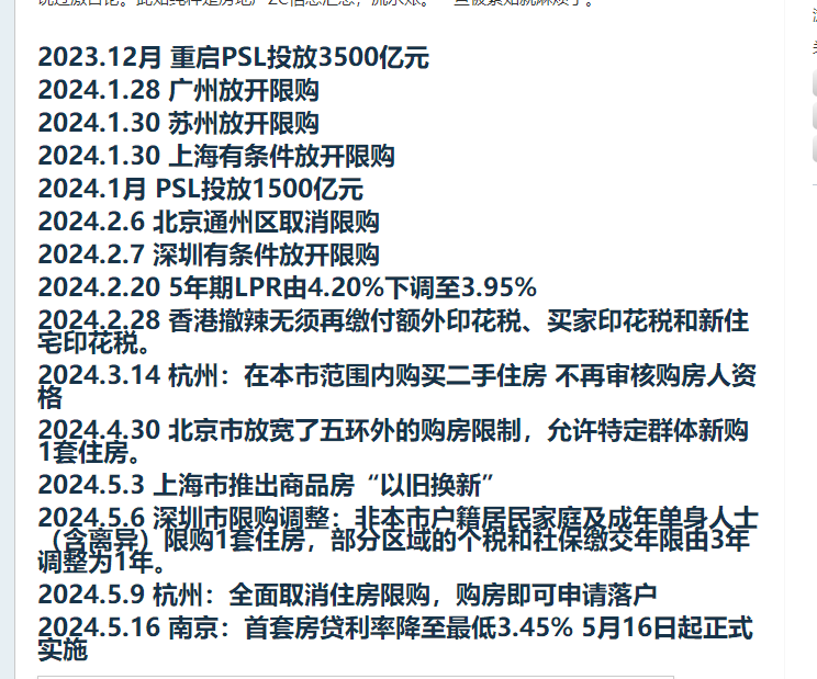 截至2023年12月18日,2023年地方松动政策出台达751次,较2022年增加140余次,覆盖城市超330个。将《12月14日,北京市、上海市有关部门发布通知,进一步优化调整房地产政策。》作为23年的收尾以及2024年的开始,继续记录房地产相关的新闻信息,有人预测下半年北上郊区会放开限购,让我们拭目以待。