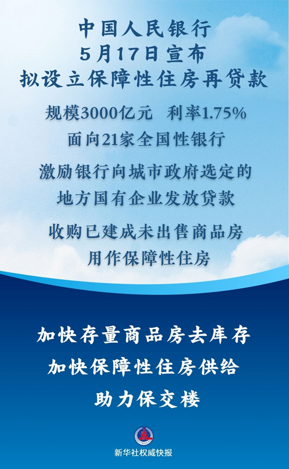 2024.5.17 央行:计划设立3000亿元的保障性住房再贷款,利率为1.75%,期限1年,可展期4次。房贷利率政策调整:取消全国层面首套房和二套房贷利率的政策下限。两部门:首套住房商贷最低首付调整为不低于15% 二套商贷最低首付调整为不低于25%,首套房个人住房公积金贷款利率为2.85%。