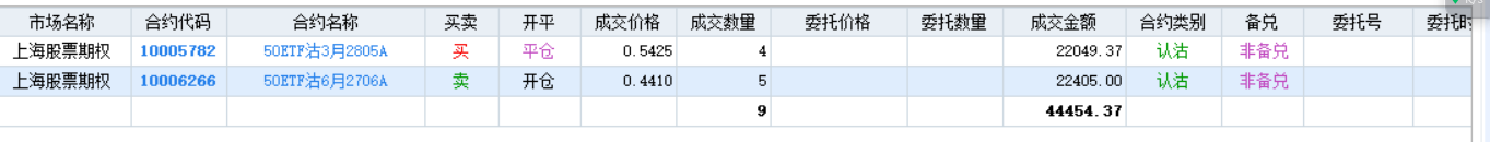 买入平仓2月5250沽+买入3月4600购,这样的话,实际就等于支出0.6609+0.1844=0.8453元。