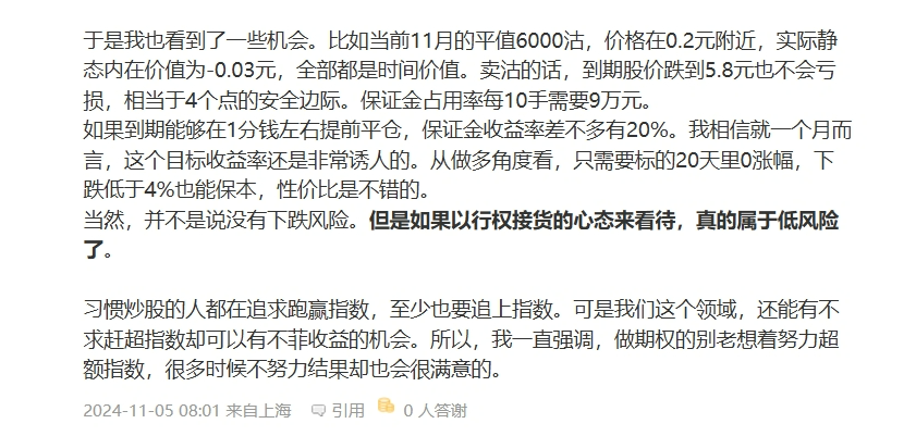 即使到了2023年,论坛上如果有网友开帖子讨论备兑策略,依旧众说纷纭,褒贬不一。而我在这个策略上已经实战了5年,每年的帖子获得点击量都达到40万以上,只不过因为用了新式词汇而给人感觉“神秘而可笑”罢了,其实本质是一样的。
