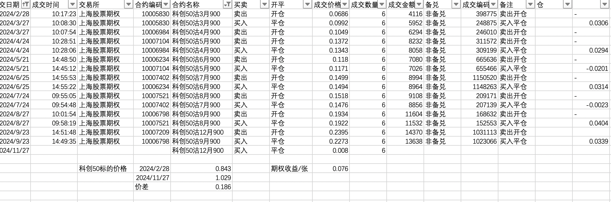 期权统计收益是个难事。昨天花了两小时把合同按月计算出了收益。