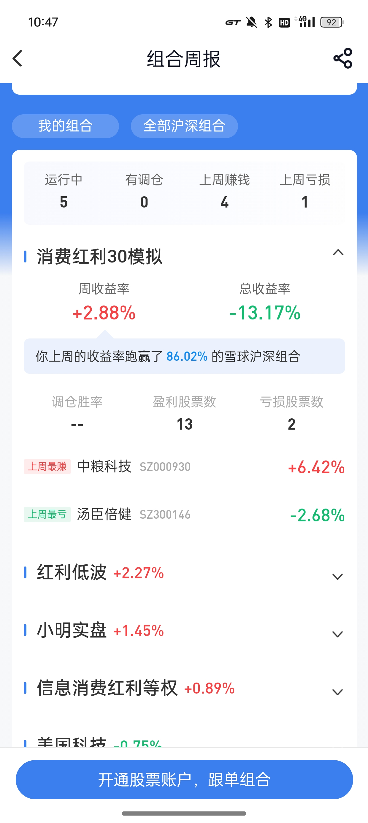 其实我发现了消费行业的红利指数和信息行业的红利指数应该同时用。今年信息产业应该肯定比消费产业要强势一些,因为新质生产力嘛,但是。懒得改了,如果每次都改就没有纪律了,明天换换仓位的时候再说。