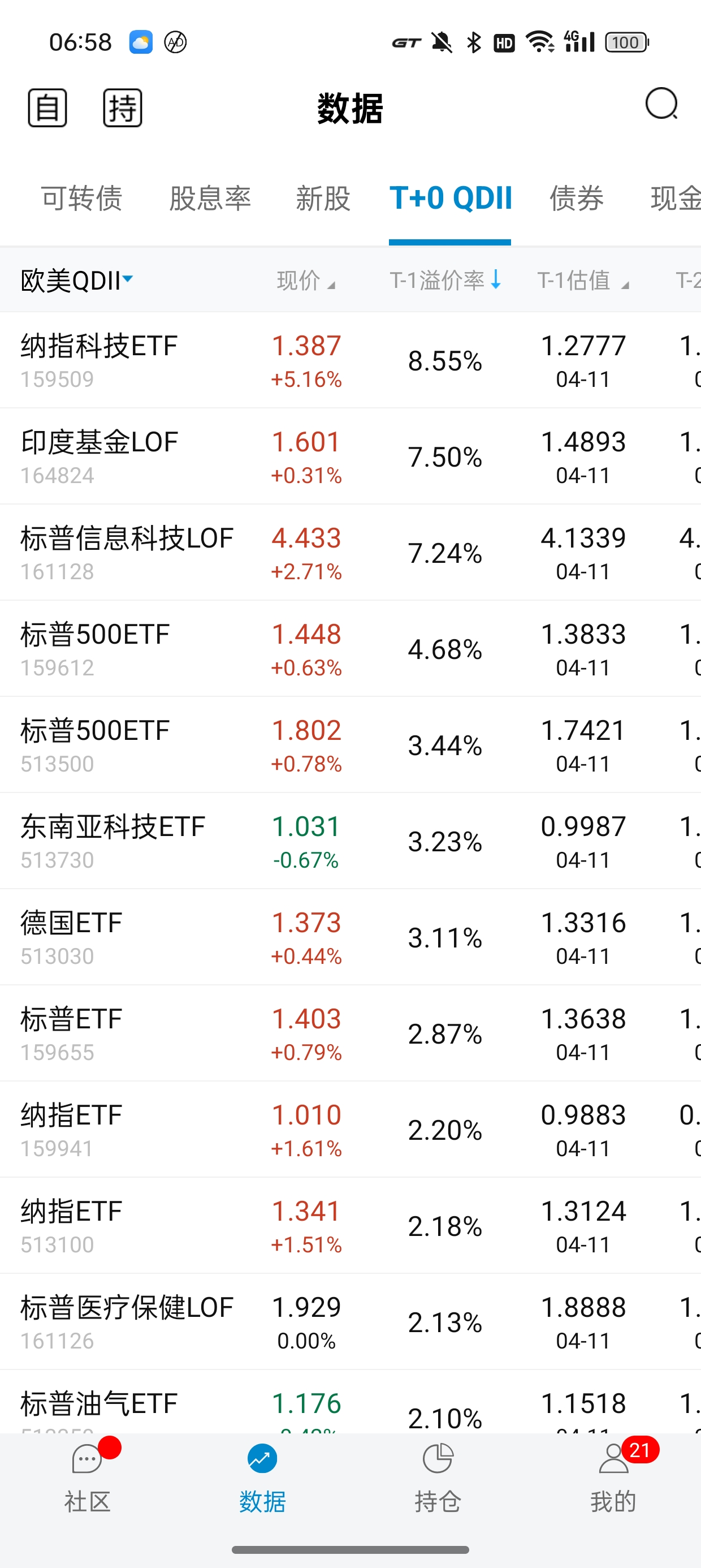 然后明年要看看纳斯达克的跟踪误差,说景顺长城的纳斯达克100基金跟踪误差较大,然后易方达的QDII额度较为紧张,没法压制溢价