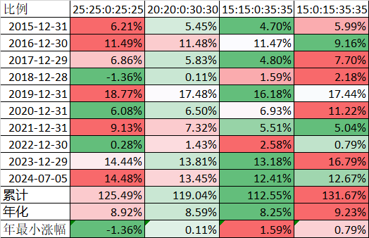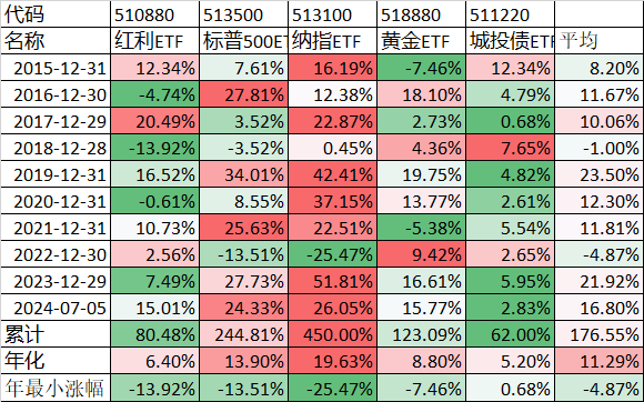年初跟踪的各种策略,表现最好的是红利低波(512890)、标普500ETF(513500)、黄金ETF(518880)三因子再平衡组合,半年来不仅收益率高达18%多,而且每个月都能做到正收益。但不管是纳指100ETF、标普500ETF,还是红利低波ETF或者是黄金ETF,反正这些涨的好的品种我都有,就是不敢上仓位。4月份全仓做了一次择时惨败后再也不敢尝试了。听天由命吧。