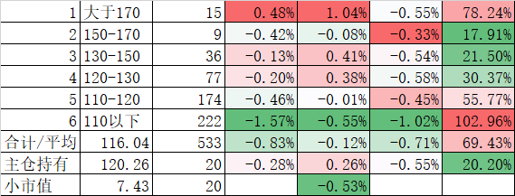 今天虽然账户合计亏了0.26%,但只有5只可转债的小账户还盈利了0.12%,次小账户也只有亏了0.20%。除了持有可转债的数量外,冲击成本是很大的影响。