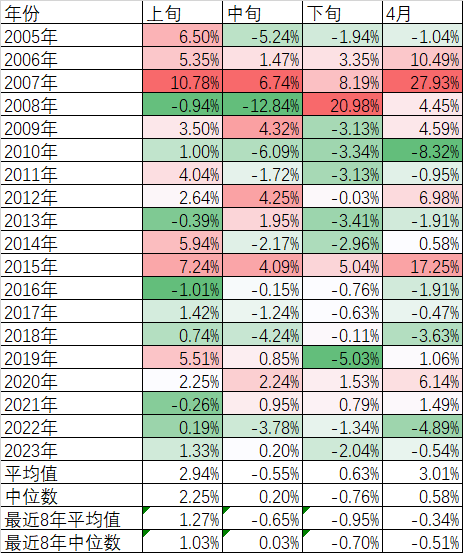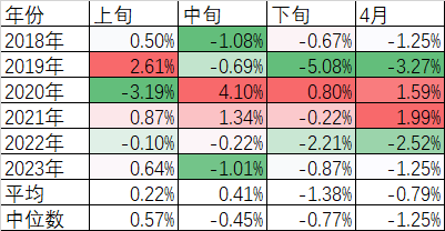 其实微盘股在月中的时候得到的调整幅度已经相当可观了,甚至比近十年四月份“平均”涨跌幅大许多倍,调整幅度在历次排行中也十分靠前