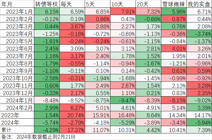 今天如果主仓20只可转债不换仓应该涨1.33%,换仓途中损失严重,结果实盘只涨了0.91%。不过本周和本月还略微战胜了一点可转债等权指数,只不过今年略微跑输。在今年这样大幅度震荡的行情下能和等权指数基本持平。目前市场又开始稳定到我们熟悉的套路上来了,对春节长假后的行情充满期盼。