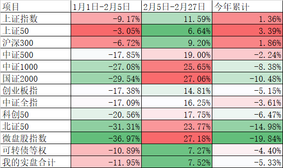 节前最后一天中证2000ETF的涨停,和微盘股的地天板,至少比较圆满的完成了节前的救市。虽然今天账户还是亏的,但我们憧憬着龙年美好的未来。