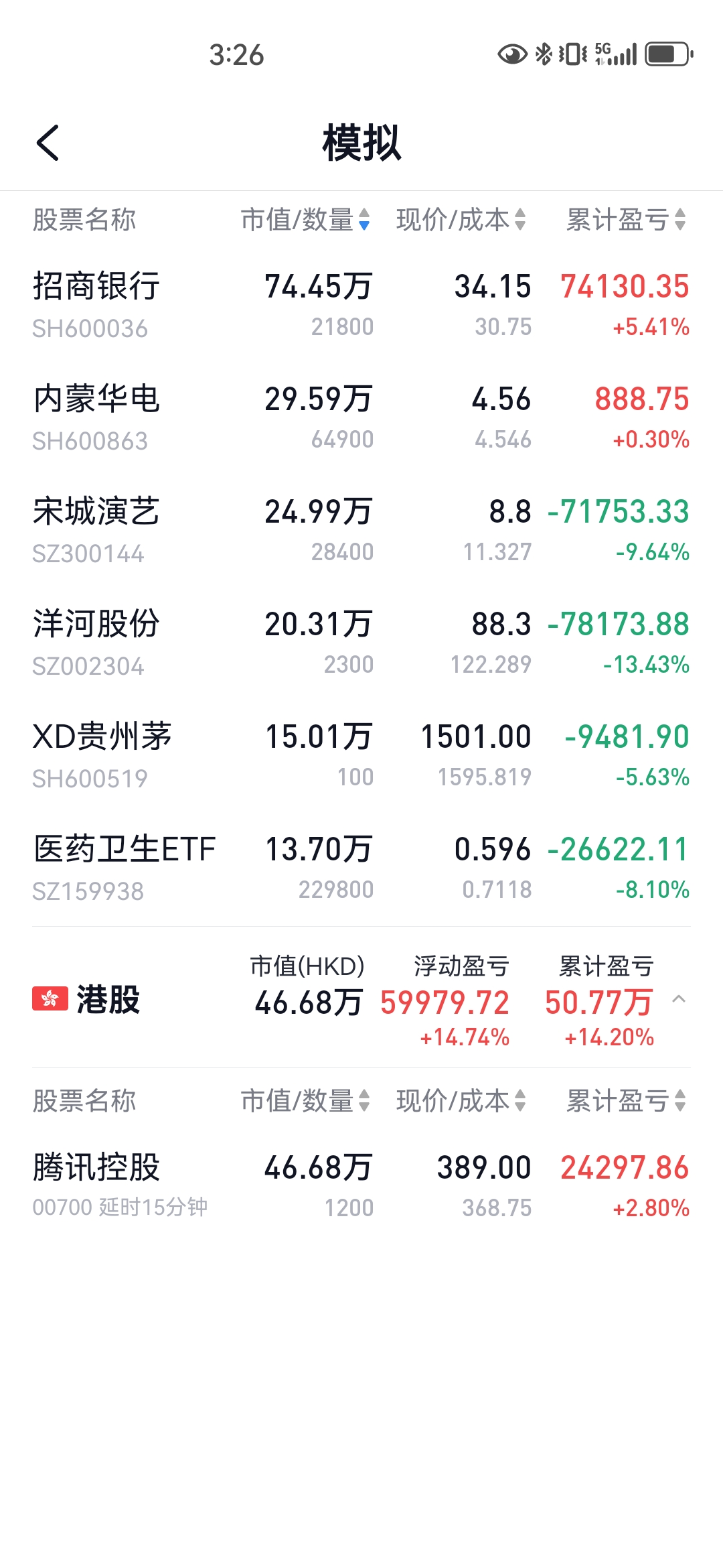 持仓个股分红还有招行和内蒙华电没到账。预计加起来有五万多。熊市底部珍贵的子弹。