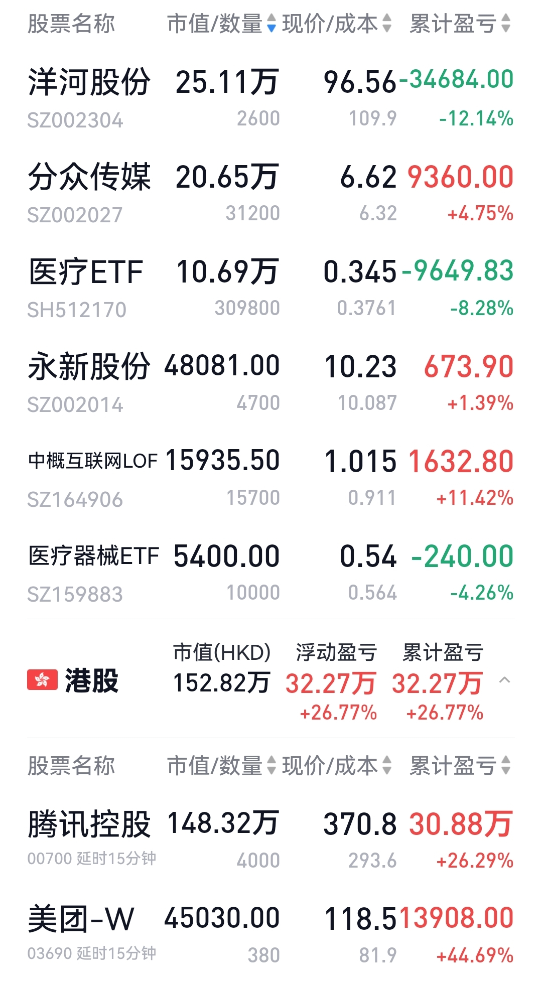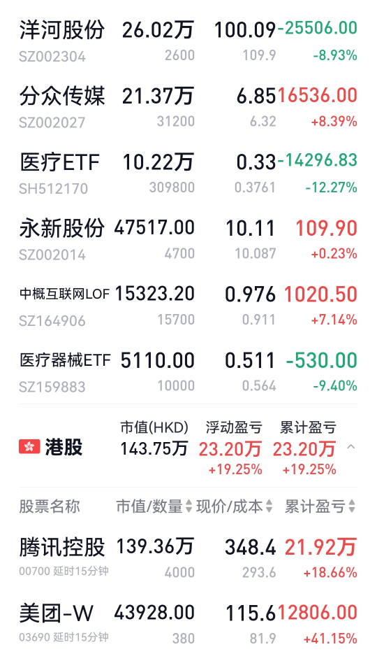 2023,-10.52%,腾讯、洋河亏,分众小赚。亏损20.2万。
