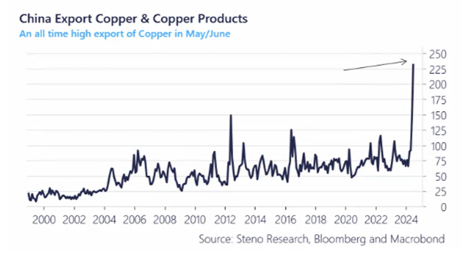 大宗商品价格,在特朗普遇刺后短暂上冲一下后立刻跳水,是反应了国际需求不足的衰退预期吗?但是美债收益又没什么变,收益率甚至还涨了点;黄金也跌回2400元左右