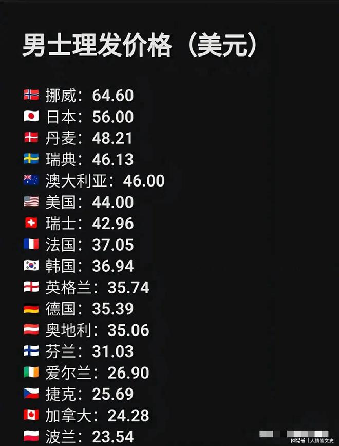 比如美国,一个普通男子理发的中位数大概是30美元(含小费)。而家政保姆的月工资大概4000美元。也就是说,理发师133.3次理发的收入,可以支付保姆的月薪