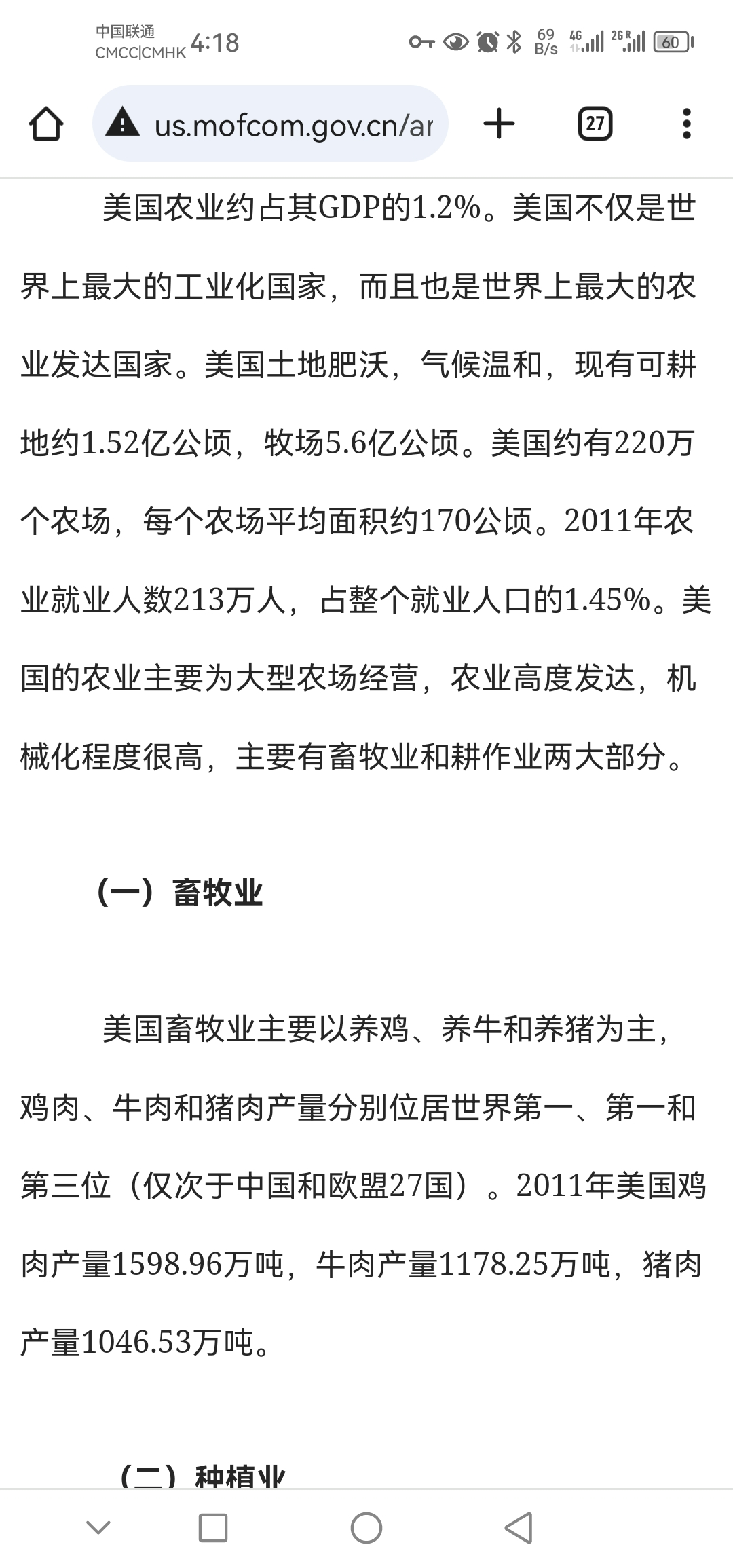 你看看视频里这片地有多大,一直看到地平线都是农田,肯定超过一万亩了,机械耕作用不了几个人https://www.bilibili.com/video/BV1NV411z7ZF/机械化很简单,不是什么高科技,中国也做的到,但很多土地都是口粮田,农村的老头老太太没有养老金,就靠种几亩地吃饭,没有土地大兼并的条件等以后老一代都去世了,农村的年轻人都进城了就好办了中国土地平原都机械化收割,播种了。跟美国没什么区别,有区别的是美国可以统一种植一种作业,国内谁家的可以规定自己种什么。虽然是这样不过一个大部分人种的作物是一样的。比如周口种植玉米,商丘种植花生,开封种植大蒜。