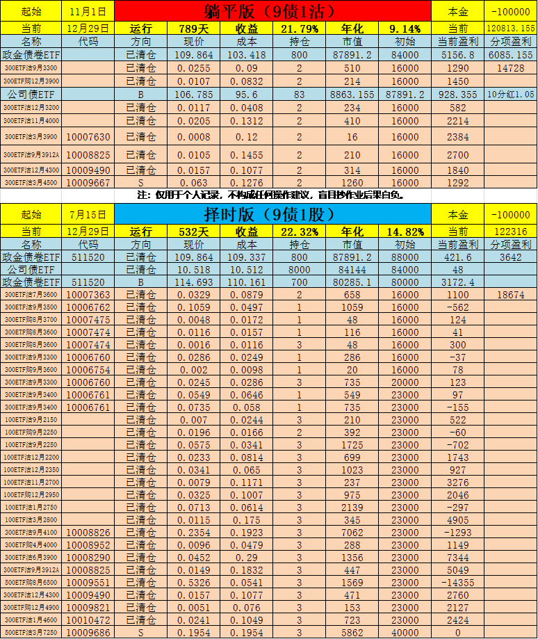 看多债市,看空股市,这个组合的意义是什么呢?如果债市跌、股市涨,亏的多的都折了债多股少主要是为了降低波动,主观带有择时的味道。可能到10月份或再晚一点儿,债券端标的就换成其他的了!