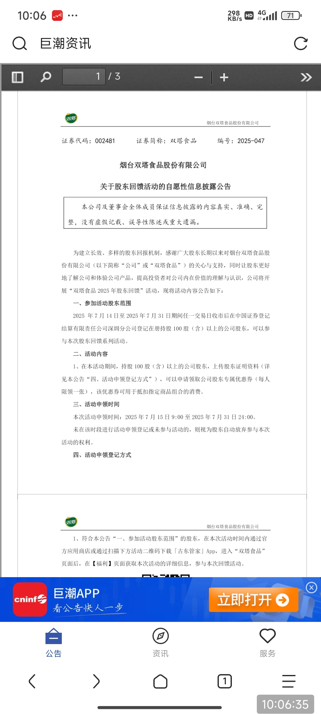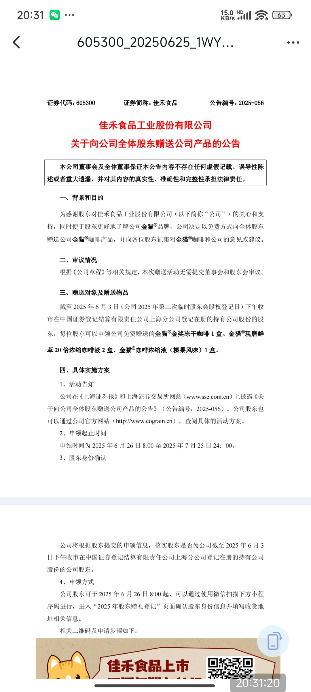 感谢分享。一直保留着一股佳禾食品,还以为今年没有实物分红了。。。