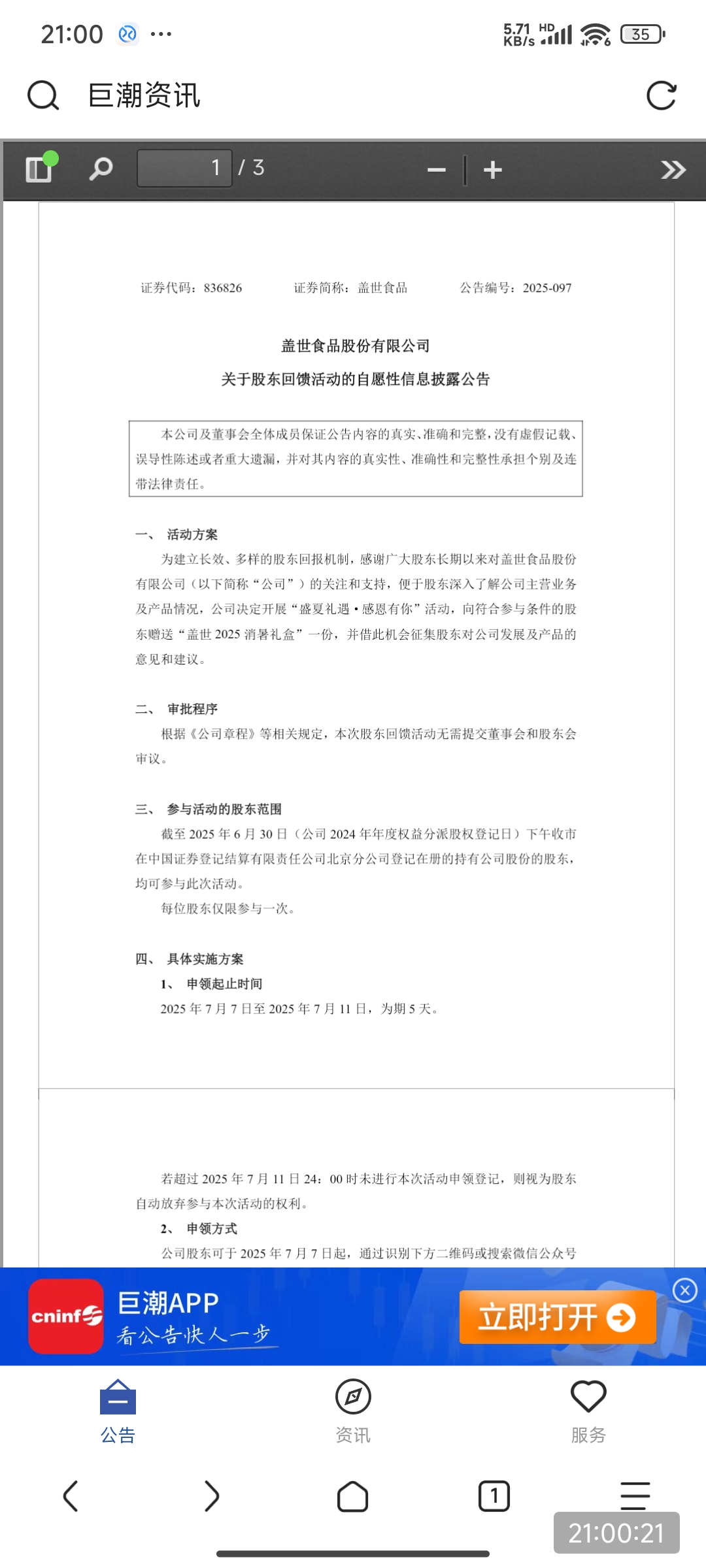 盖世食品,消暑礼盒,北交所的,还有一股试试给不给我发。
