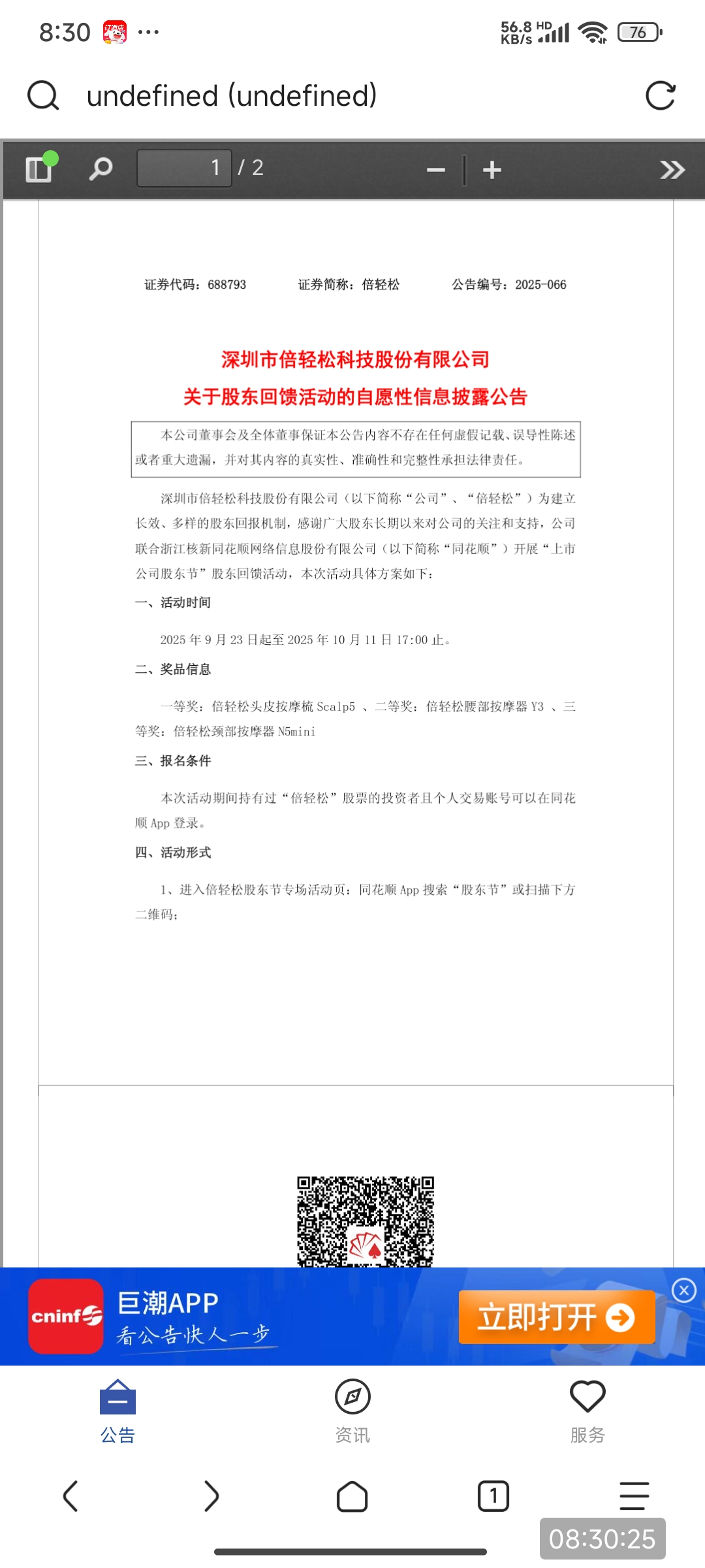 倍轻松688793 道通科技688208 华致酒行300755 天域生物603717 劲仔食品003000 均胜电子600699 乐惠国际603076 天娱数科002354 源飞宠物001222 诚意药业603811 荣信文化301231 海信家电 000921 安孚科技 603031 邦彦技术 688132 中国平安601318
