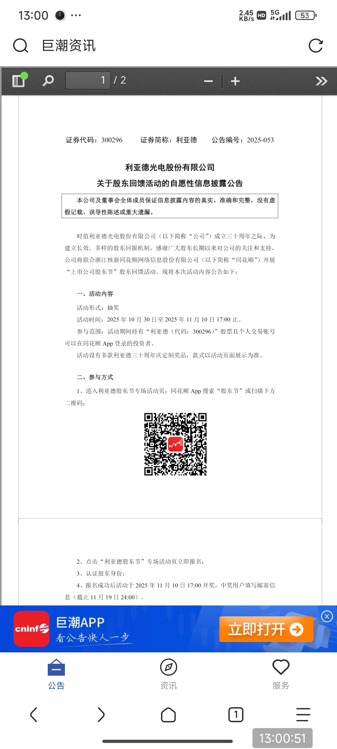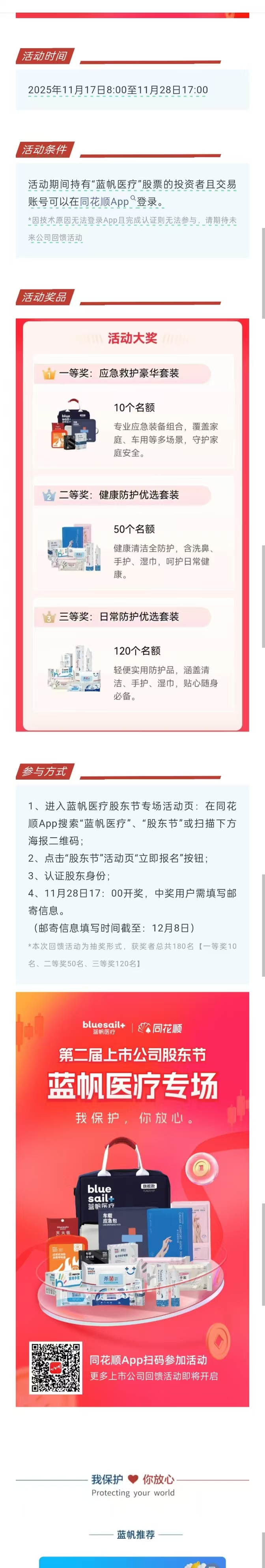 仔细看,只有180个中奖名额!估计是同花顺连同蓝帆想办法:借股东回馈之名,打最低代价广告!