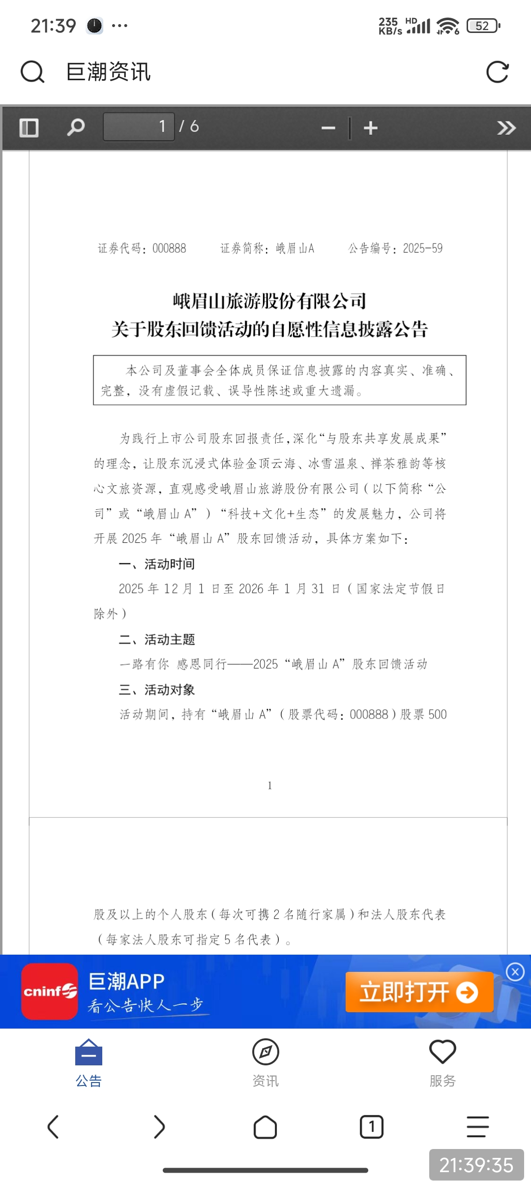 华侨城公告给股东送礼。要求是10月30号收盘持有华侨城的股东可以参与,11月8号可以免费到欢乐谷玩。