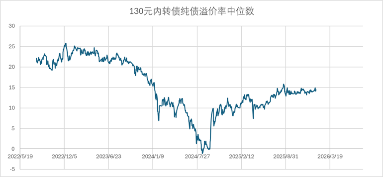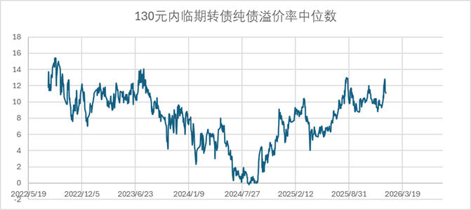 转债价格持续上行,130元以内转债数量进一步下降,为了确保样本数量足够,价格上限从130元提高至135元。转债的整体估值,已经处于2022年8月转债新规后极高的位置。