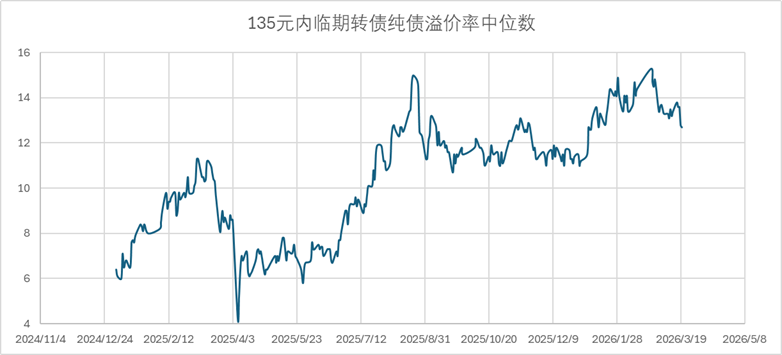 请教:一 临期怎么定义的?二 现在中位数140了,有统计135以上的纯债溢价率和转股溢价率数据吗?