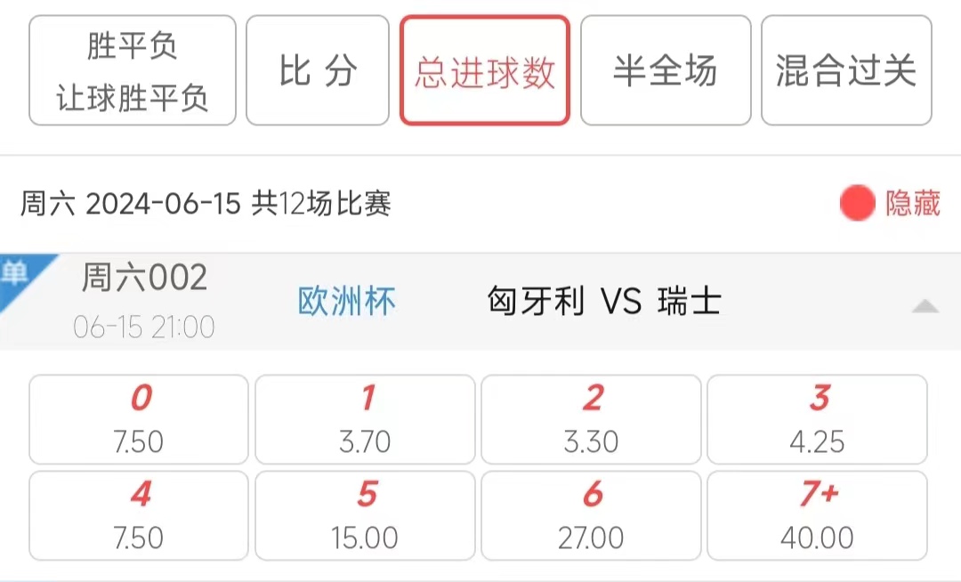 6月15日晚上9点匈牙利VS瑞士比赛结果: