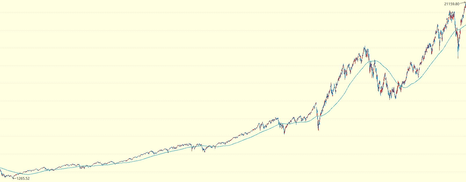 原理很简单,一年一般有250个左右的交易日,因此指数/股价高于前一年的平均值则为牛市,低于前一年的平均值则为熊市。