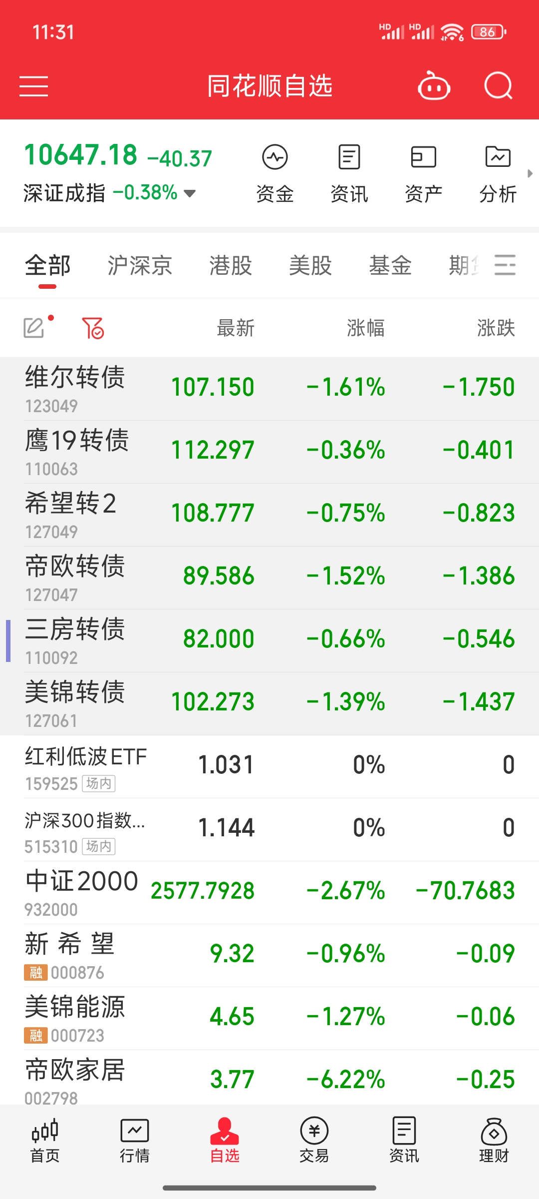 开启新一周的亏损。本日账户-0.11%。本月-1.1%。卖出蓝帆转债,侨银转债,买入天23转债。持仓基本全绿。其中山鹰国际亏损较大。持续跑输指数的第二周了。蓝帆拿着到期兑付 卖了就亏了 配一点大概率没问题