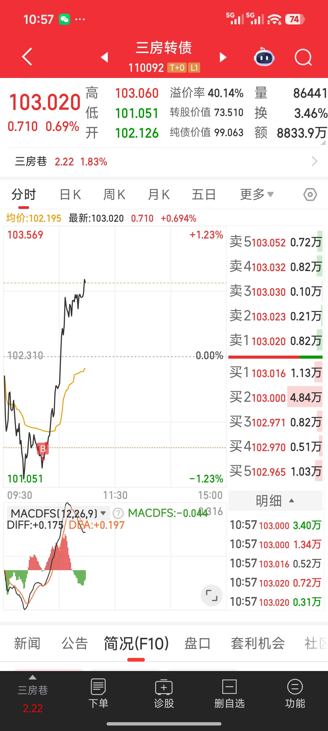 勉强当日翻红。本月还亏约3%。三房转债拖了后腿,经过逐步加仓,三房转债成为第二大重仓。目前持仓有闻泰转债,三房转债,山鹰国际,蓝帆转债,美锦转债,百畅转债,文科转债,龙大转债,五粮液。