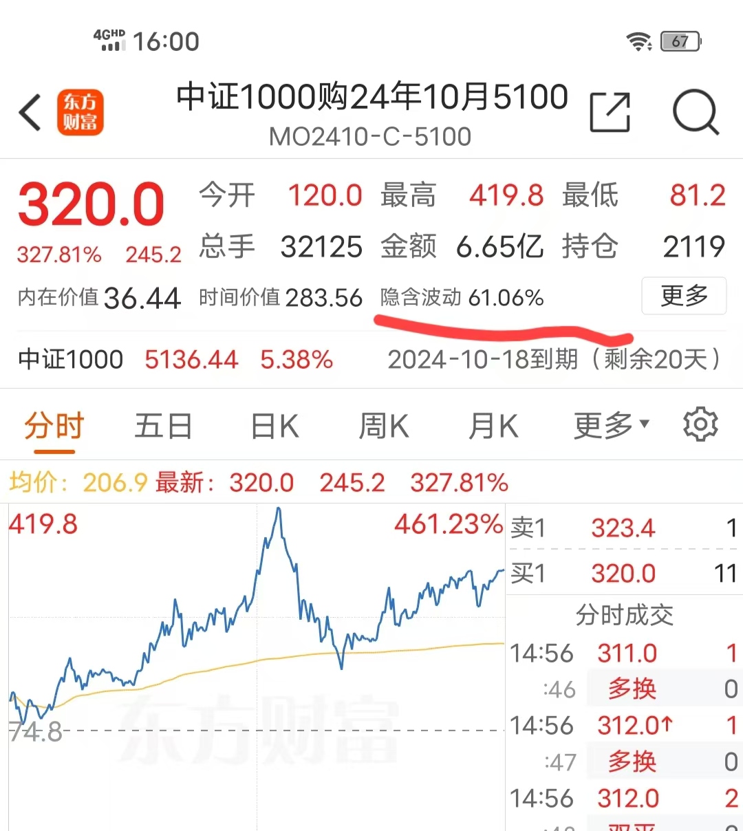 IM2410涨10%,中证1000ETF涨了近9%,虽然指数显示只涨5.38%。 到底谁错还不好说,隐波可能也是假的是啊,无法判断真实情况,不过我也打算卖虚CALL做备兑了。看周一情况决定