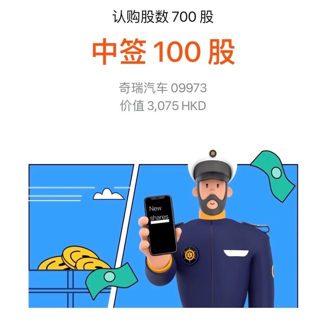 100新股价值3075HKD,中签扣除款为3106HKD,中签费31HKD;