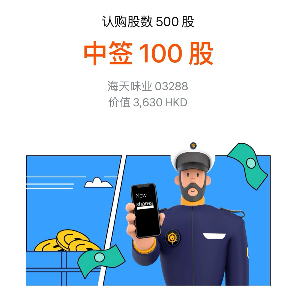 6月10日长桥证券入金,6月11日提交认购海天味业新股,6月18日公布中签,没想到中签一股。
