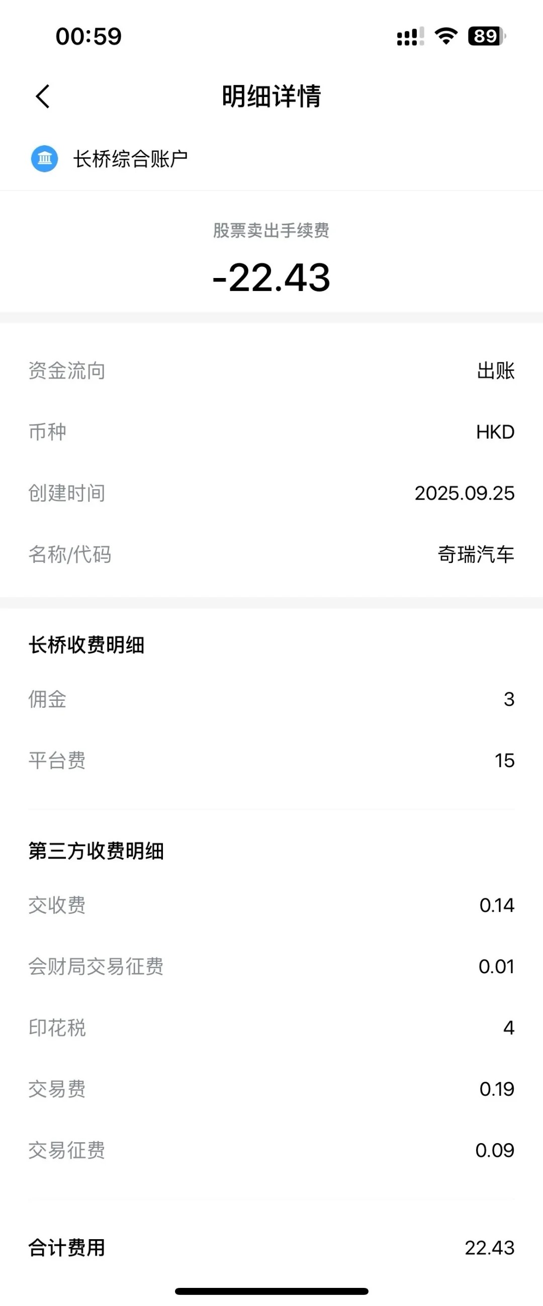 也就是净收益为3372-3106-22.43=243.57HKD;
